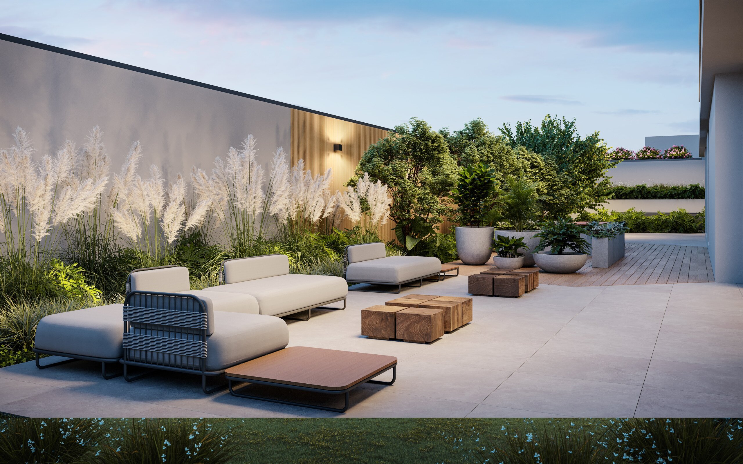 Gardens: 196 a 220 m² cobertos + 87 a 232 m² descobertos, 4 vagas e depósito privativo.